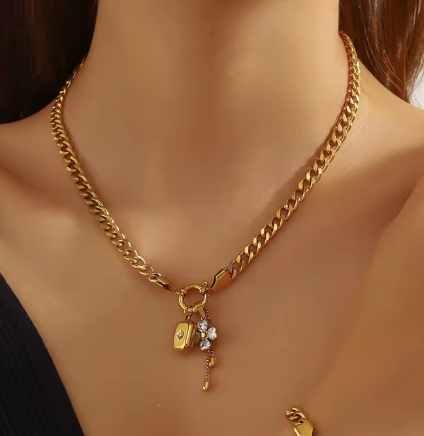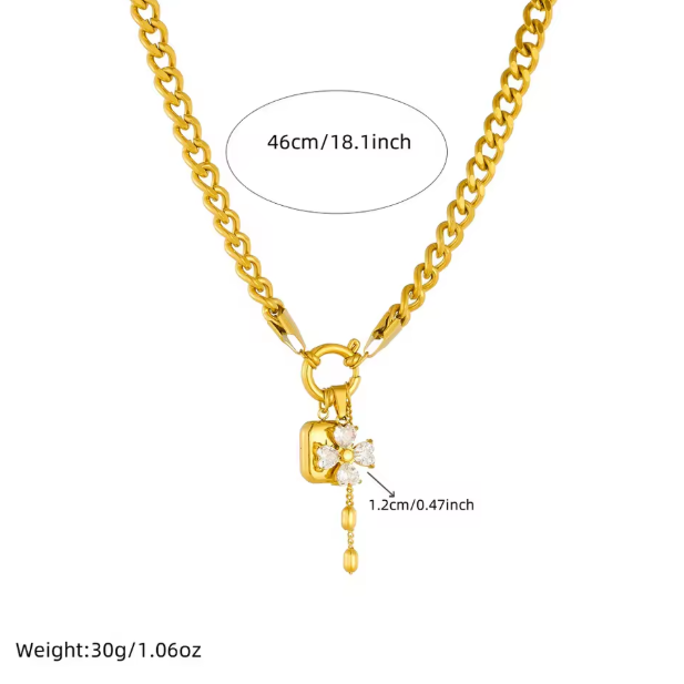 Diamond-Studded Flower Star Square Pendant Tassel Necklace