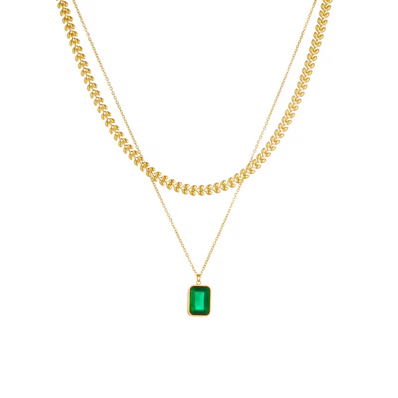 Double Layers Green Crystal Zircon Necklace