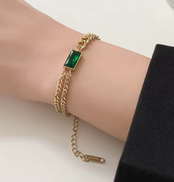 Emerald Zircon Double European Style Collarbone Bracelet