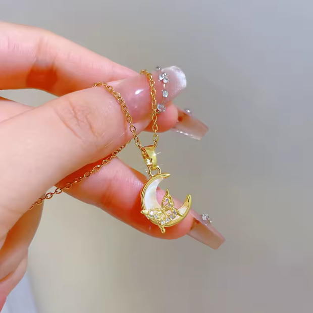 Moon Butterfly Zircon Necklace