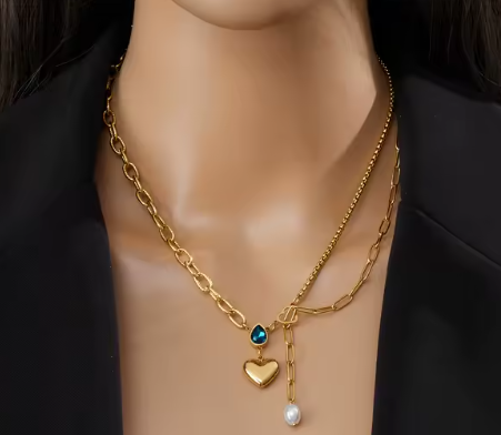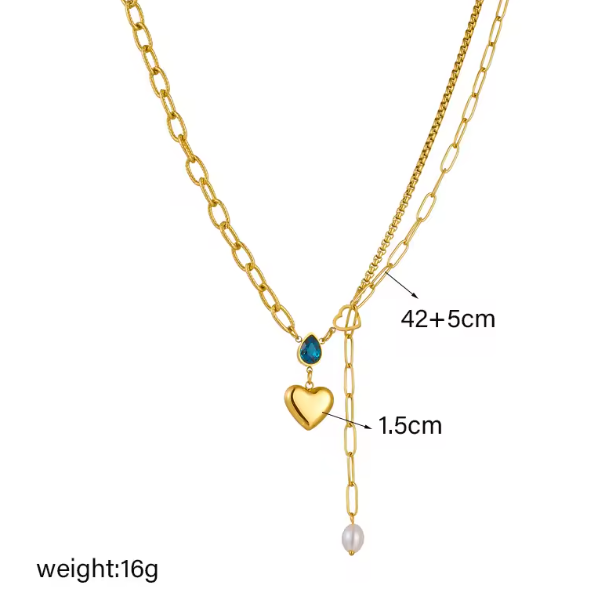 Multi Style Chain Irregular Pearl Heart Pendant Necklace